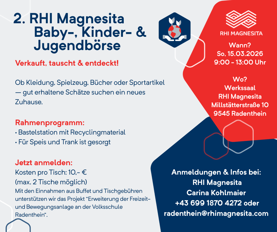 Es wird erneut ein Buffet angeboten. Die Einnahmen aus den Tischgebühren sowie aus dem Buffet kommen dem Projekt „Erweiterung der Freizeit- und Bewegungsanlage an der Volksschule in Radenthein“ zugute.