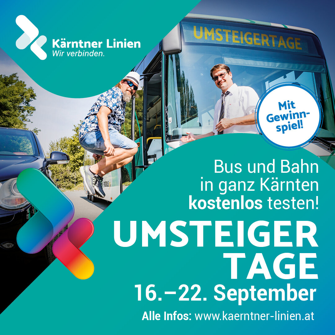 Im Rahmen der Europäischen Mobilitätswoche vom 16. bis 22. September 2025 haben alle Interessierten die Möglichkeit, den öffentlichen Verkehr in Kärnten ohne Ticket, ohne Voranmeldung, unbegrenzt und völlig kostenfrei zu nutzen. Einfach einsteigen, losfahren und sich überzeugen lassen!